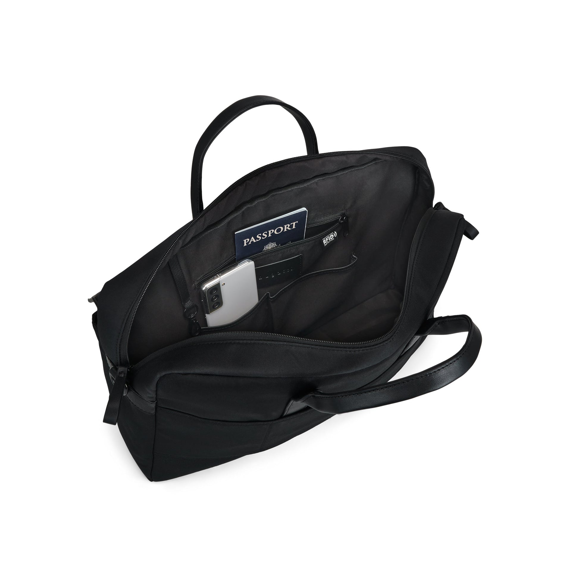 - Deux compartiments avant séparés avec fermeture à rabat magnétique