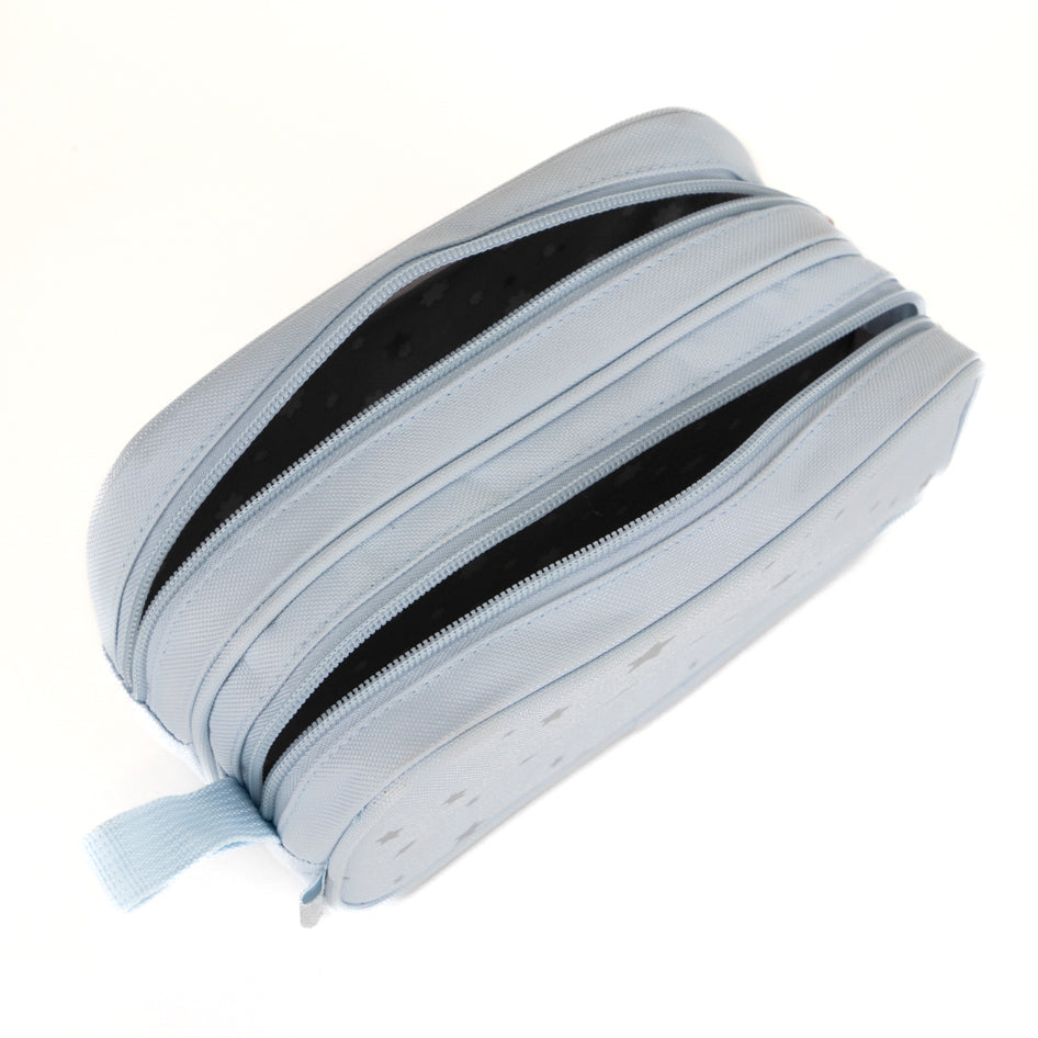 Gardez vos fournitures scolaires étincelantes avec la trousse Lula Star Foil. Élégante et pratique, elle arbore des étoiles métallisées sur fond bleu et offre un intérieur spacieux pour ranger stylos, feutres ou produits de maquillage indispensables.