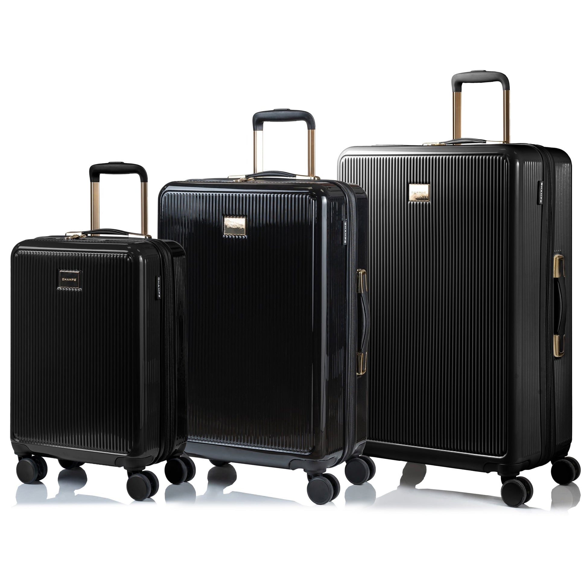 Découvrez la Collection Luxe, symbole de sophistication et de luxe moderne. Cet ensemble de trois pièces, confectionné avec soin et comprenant un bagage cabine, un bagage moyen et un grand bagage cabine, arbore de somptueux détails dorés qui ajoutent une touche d'élégance à vos voyages. Pensée pour les voyageurs exigeants, chaque pièce allie harmonieusement style intemporel et praticité contemporaine.